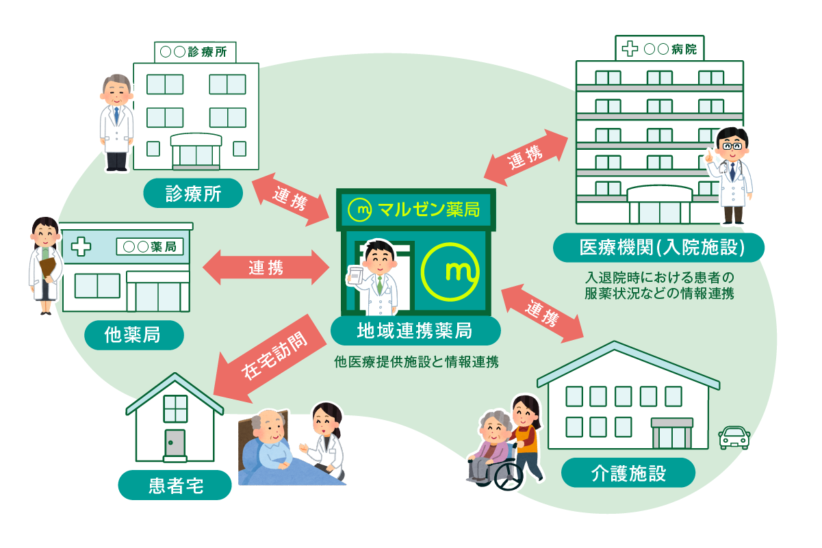 住み慣れた地域で安心してお薬による治療が受けられるよう、地域の医療・介護福祉関係施設と連携しながら患者さまを支えていく役割を持つ薬局として、2021年8月1日より「地域連携薬局」と「専門医療機関連携薬局」という2つの認定制度が始まりました。