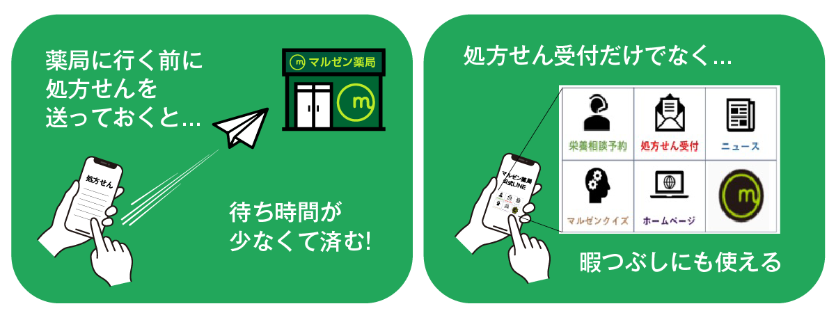 ( 注1 : マルゼン薬局の各店舗のLINEは全て異なりますので店舗名にご注意ください。)