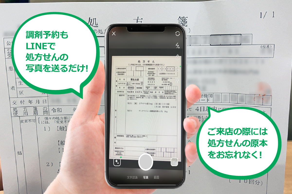 LINEから事前に処方せんの画像を薬局に送信していただくことで、お薬の用意ができるまでの時間を有効活用していただけます。